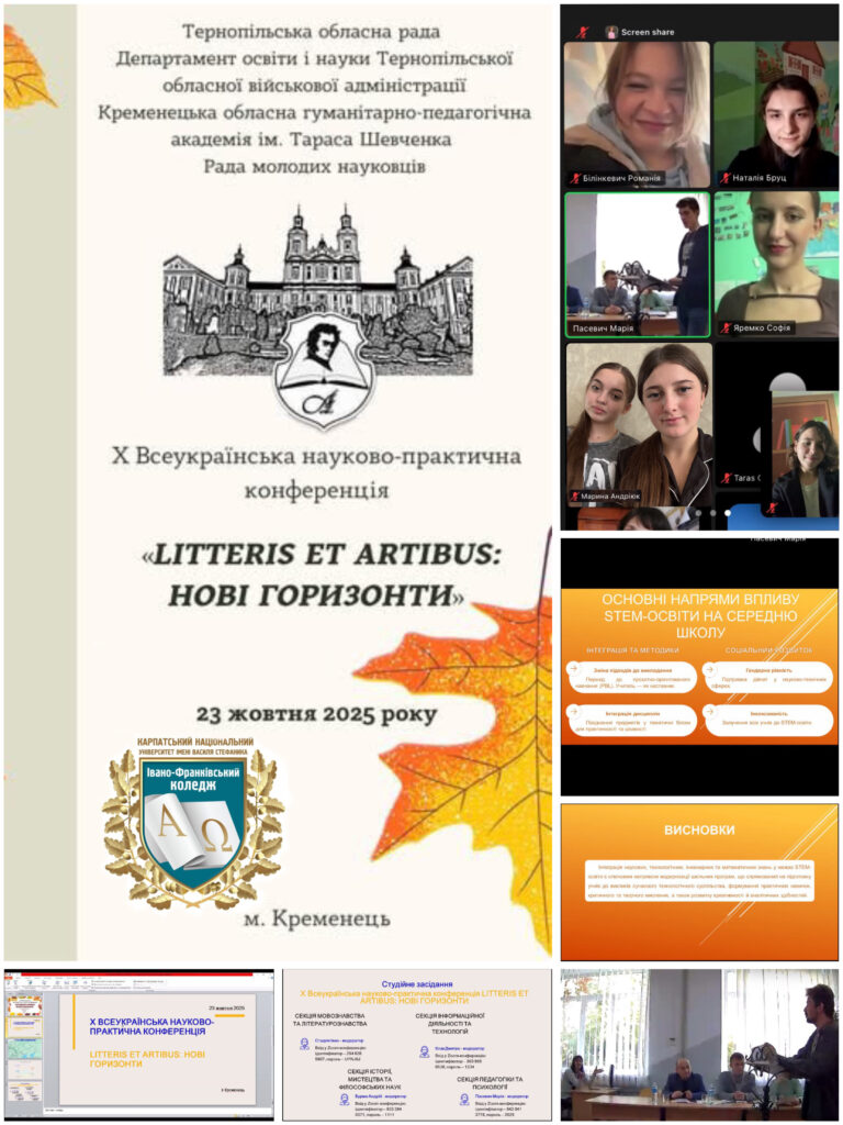 23 жовтня студенти спеціальності “Початкова освіта” Андріюк Марина, Білінкевич Романія, Бруц Наталія, Стасів Анастасія, Шатрук Каріна та Яремко Софія взяли участь у X Всеукраїнській науково-практичній конференції молодих учених, аспірантів, студентів «LITTERIS ET ARTIBUS: НОВІ ГОРИЗОНТИ», що проходила у Кременці.