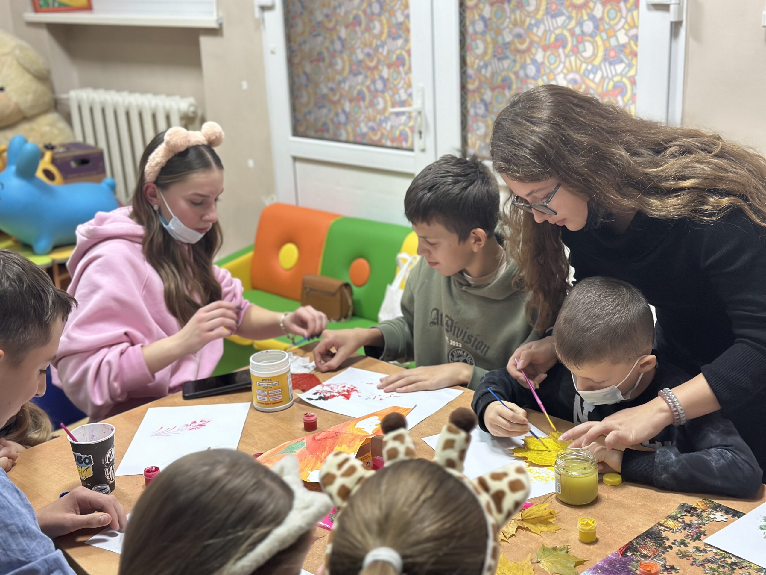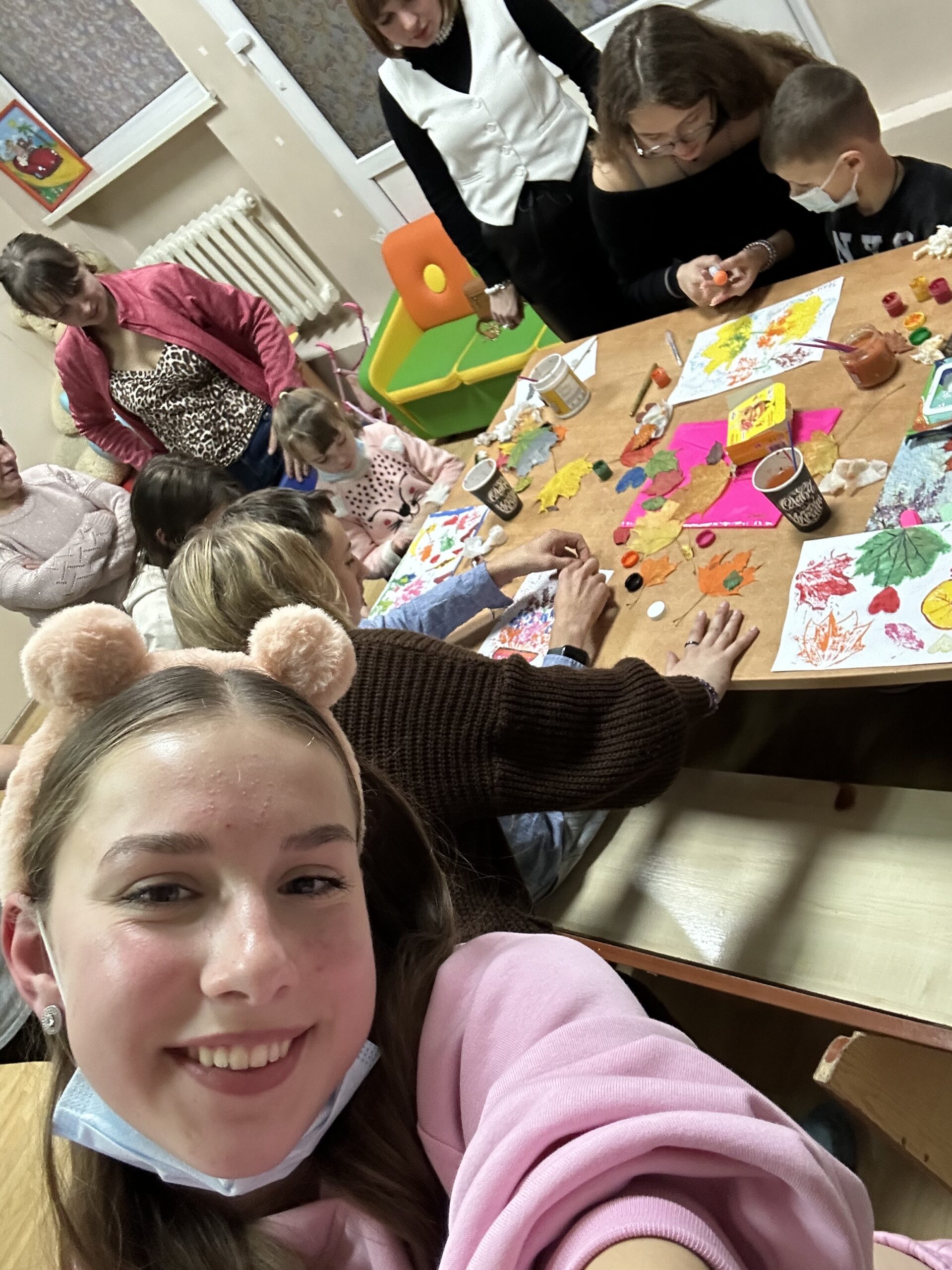Студентки Мокрій Ярина, Ткачук Єлизавета, Плекан Анна, Беренда Анастасія та Дудка Катерина разом із викладачкою мистецтва Марією Пазинюк провели творче заняття для маленьких пацієнтів онкогематологічного відділення Івано-Франківської обласної клінічної дитячої лікарні.Маленькі пацієнти разом зі студентками із захопленням поринули у світ монотипії — створювали яскраві осінні композиції, розмальовували барвисті листочки та переносили їхні відбитки на аркуші паперу.Під час заняття панувала тепла, доброзичлива атмосфера: діти посміхалися, з цікавістю спостерігали за процесом і раділи кожній своїй роботі.Такі зустрічі дарують не лише нові знання та творчий досвід, а й найцінніше — віру, натхнення й щирі емоції.На завершення всі учасники обмінялися теплими побажаннями та зробили спільне фото — на згадку про день, наповнений добром, барвами та світлом дитячих усмішок.