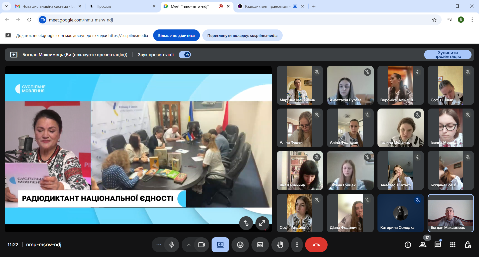 Однією з ключових подій дня стало написання Радіодиктанту національної єдності – 2025 до якого долучилися викладачі та студенти відділення. Атмосфера заходу була святковою та урочистою, адже кожен відчував причетність до важливої події, що об’єднує українців у всьому світі навколо рідного слова та національної культури. Дрес-кодом дня стала вишиванка – символ національної гідності та єдності. Учасники активно ділилися світлинами у соціальних мережах із хештегом #радіодиктантІФФККНУ, демонструючи згуртованість колективу та любов до українського слова.