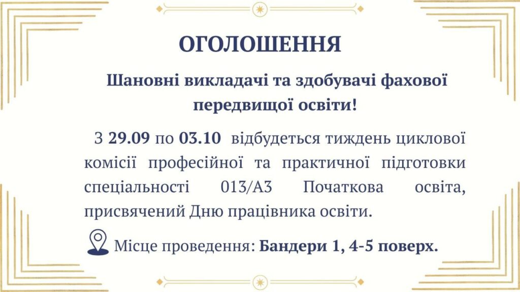 30 вересня 2025 року в рамках проведення тижня циклової комісії професійної та практичної підготовки спеціальності Початкова освіта проведено методичний семінар-практикум «Історичний розвиток української педагогіки». З вітальним словом до учасників семінару звернулася Тетяна ПОЛЯКОВА, заступник директора коледжу з навчально-виховної роботи. В Читати далі